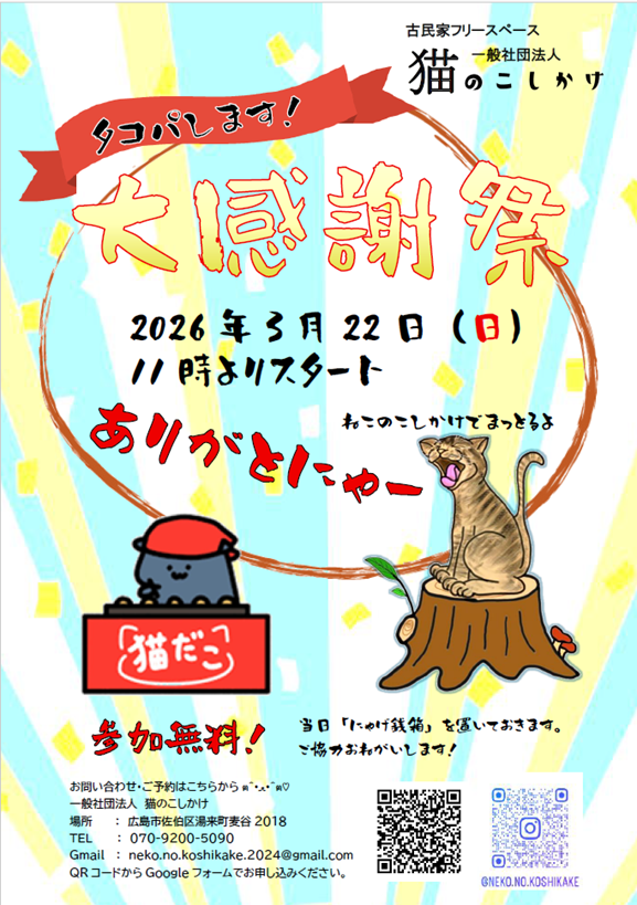 ※当日にゃげ銭箱を設置しておりますのでご協力お願いします